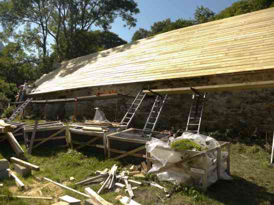 Retour en arrière: La volige intérieure est en place, on garderait bien le toit comme ça….. c’est superbe… et ça donne même des idées pour de futures restaurations….