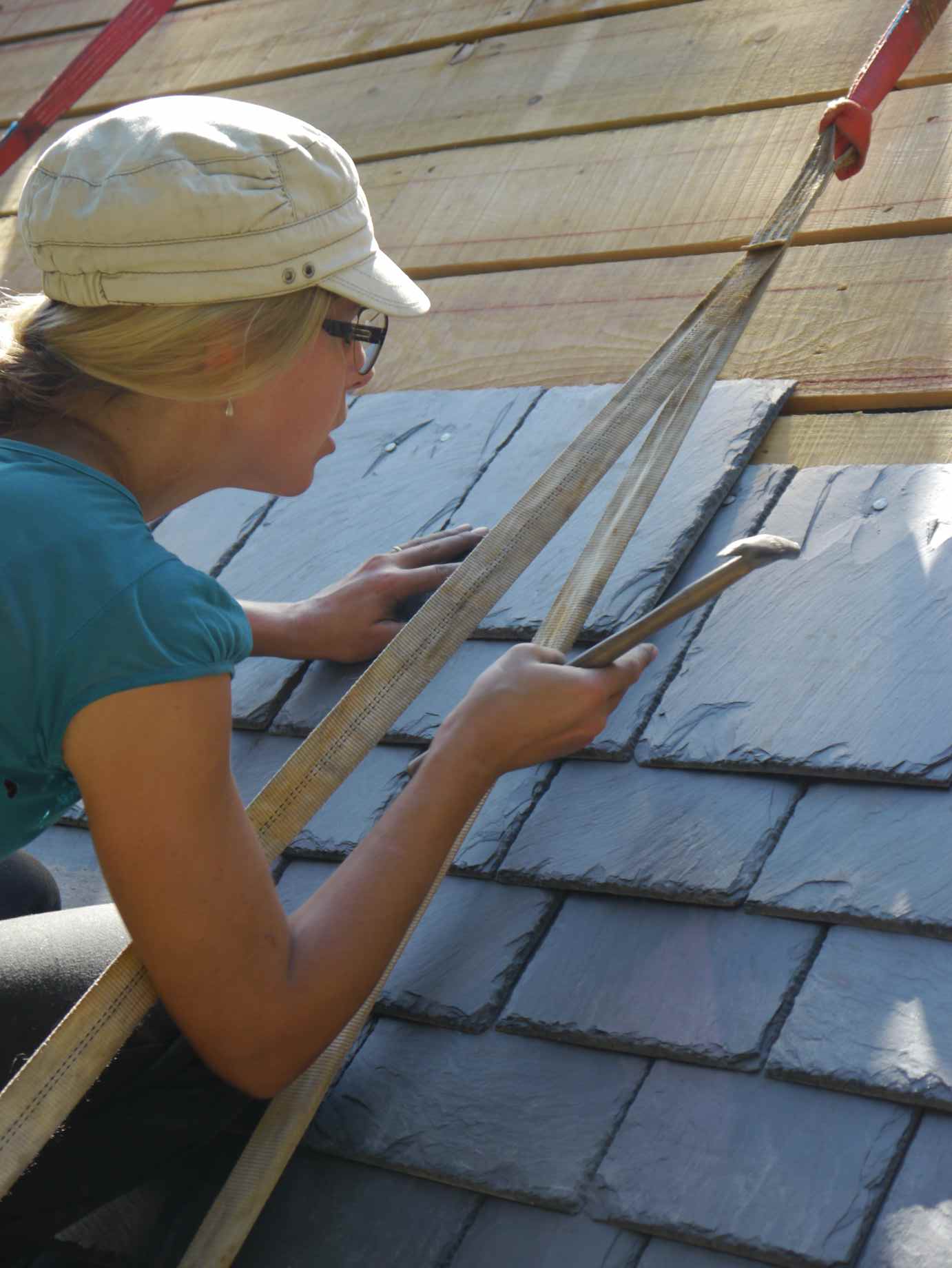 Le toit est terminé, on vous raconte cette nouvelle étape, la rénovation d’un toit en autoconstruction avec isolation en sarking et couverture d’ardoises à joints brouillés posées au clou…