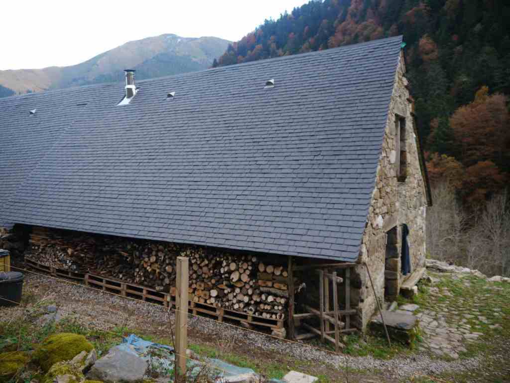 La volée du toit à été prolongée de 40cm pour permettre le stockage du bois (buche de 50cm).