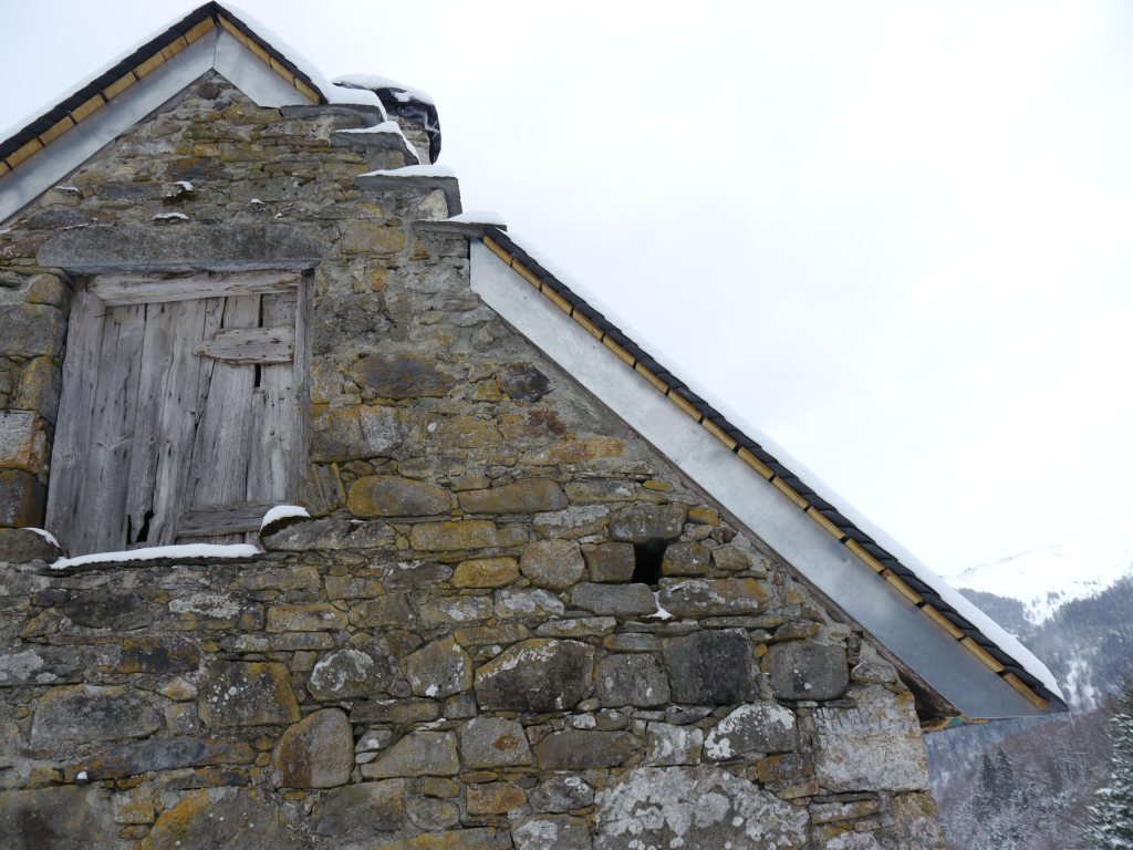 Ce matin la montée se fait toujours raquettes aux pieds mais alourdis de ces quelques 8m de zinc. Quelques heures et quelques coups de ciseaux à tôle plus tard, on prend du recul pour observer cette nouvelle rive encore brillante mais qui ne tardera pas exposée au vent et à l’eau à se fondre dans les tons gris neutre de la pierre.