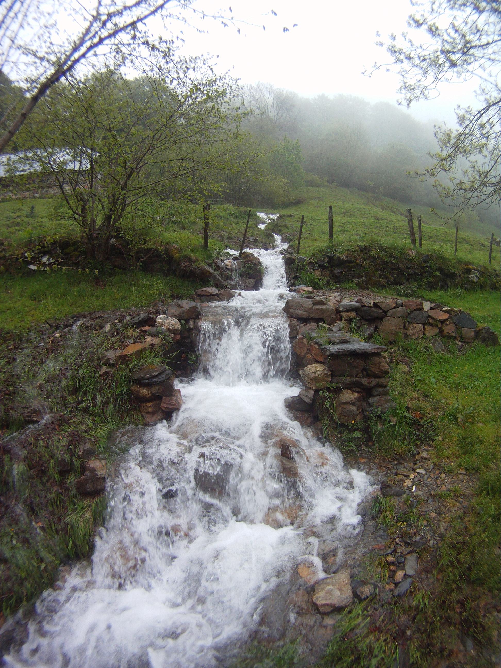Nous n’avons pas eu le temps d’en faire des photos mais la moitié de l’eau que l’on voit ici descendait à nouveau à travers prés sur la grange en arrière plan.