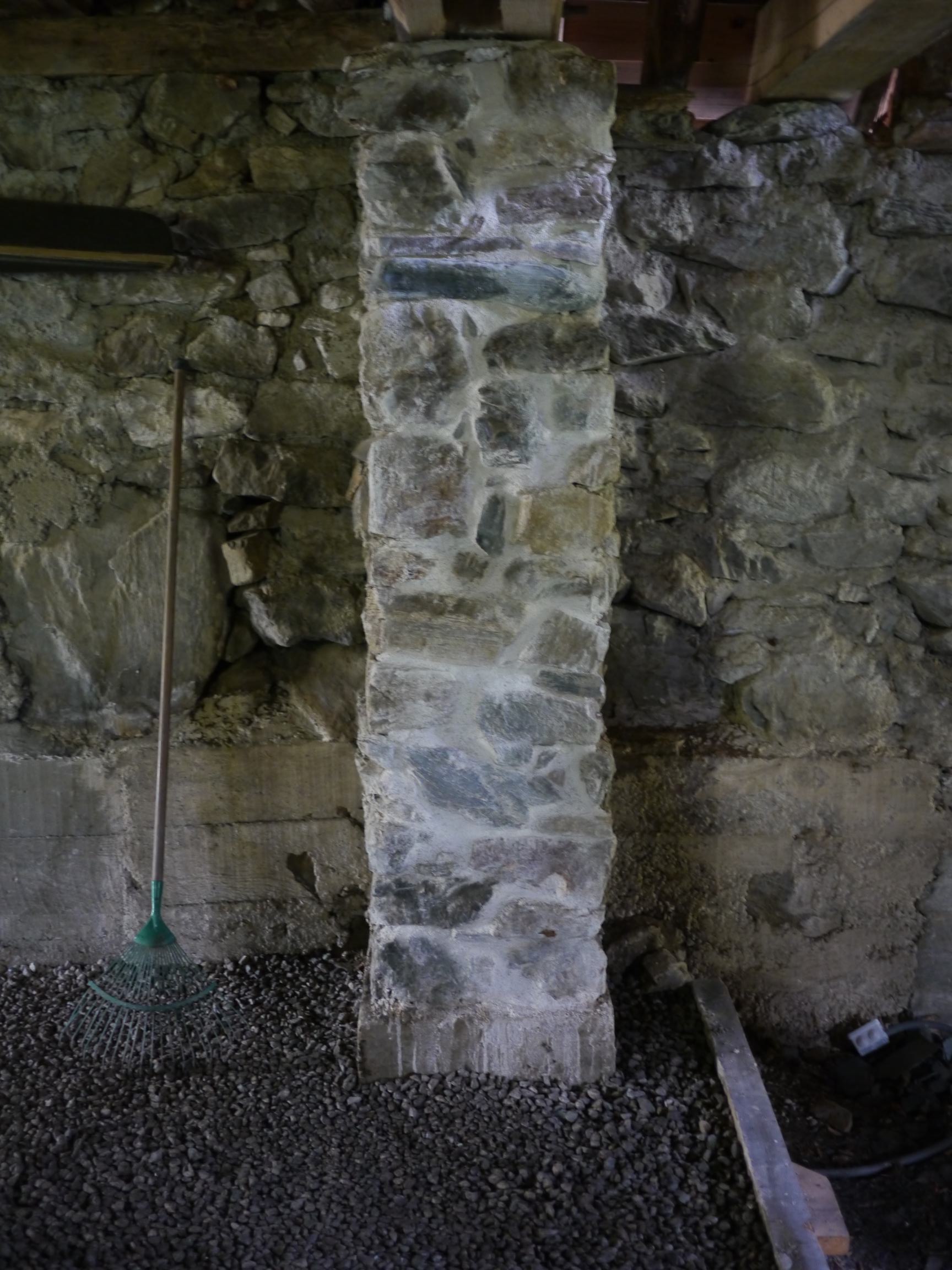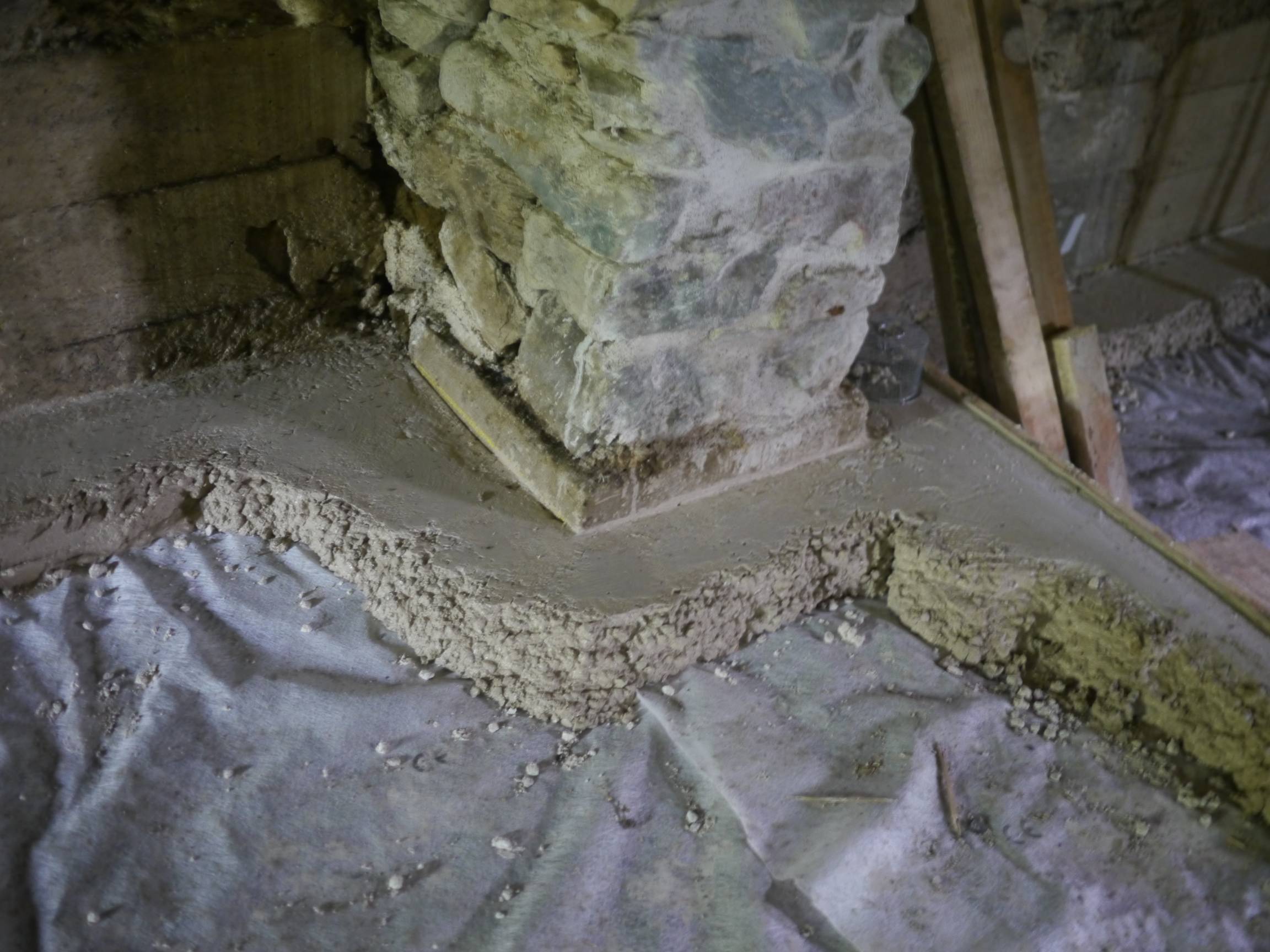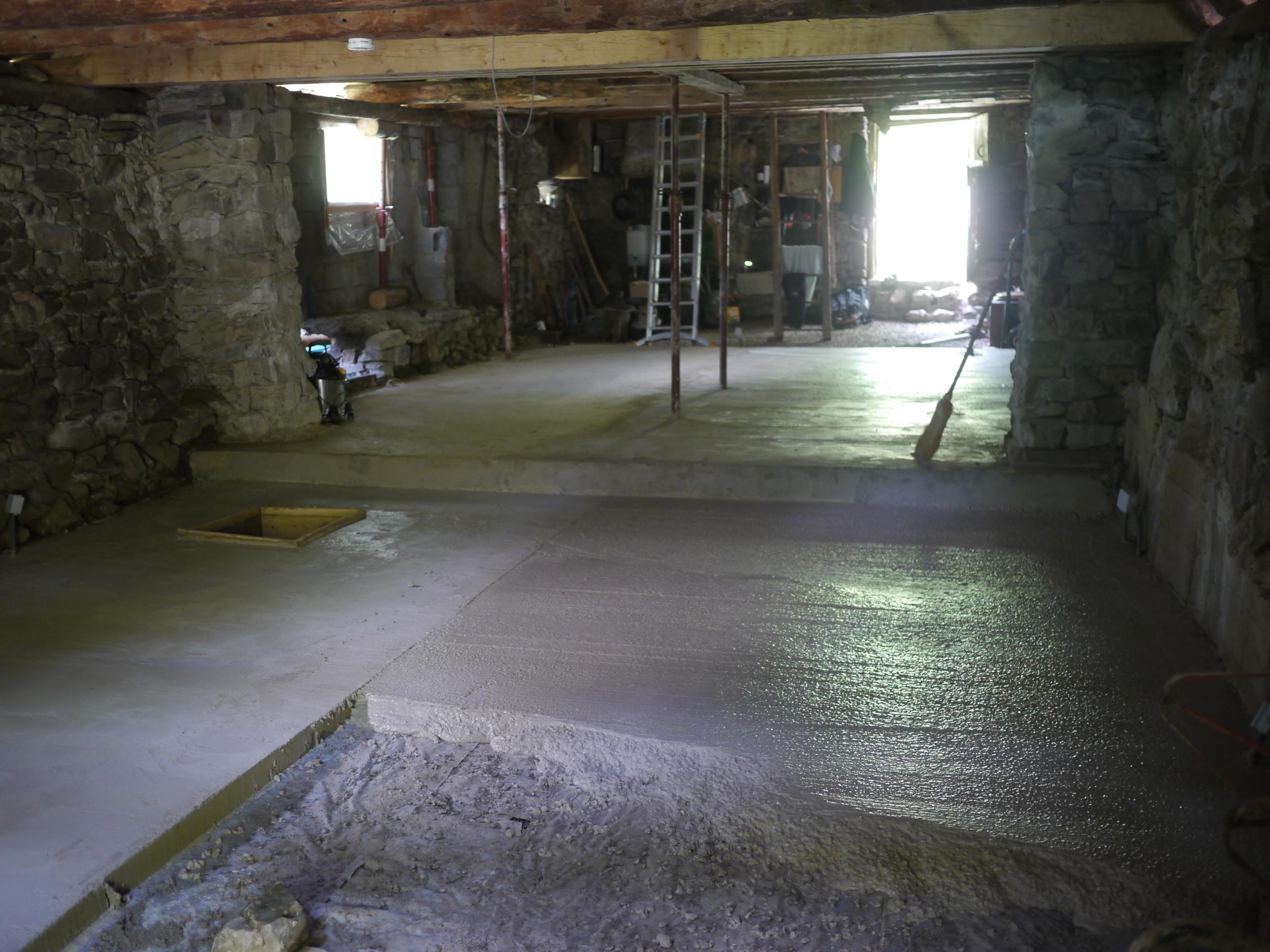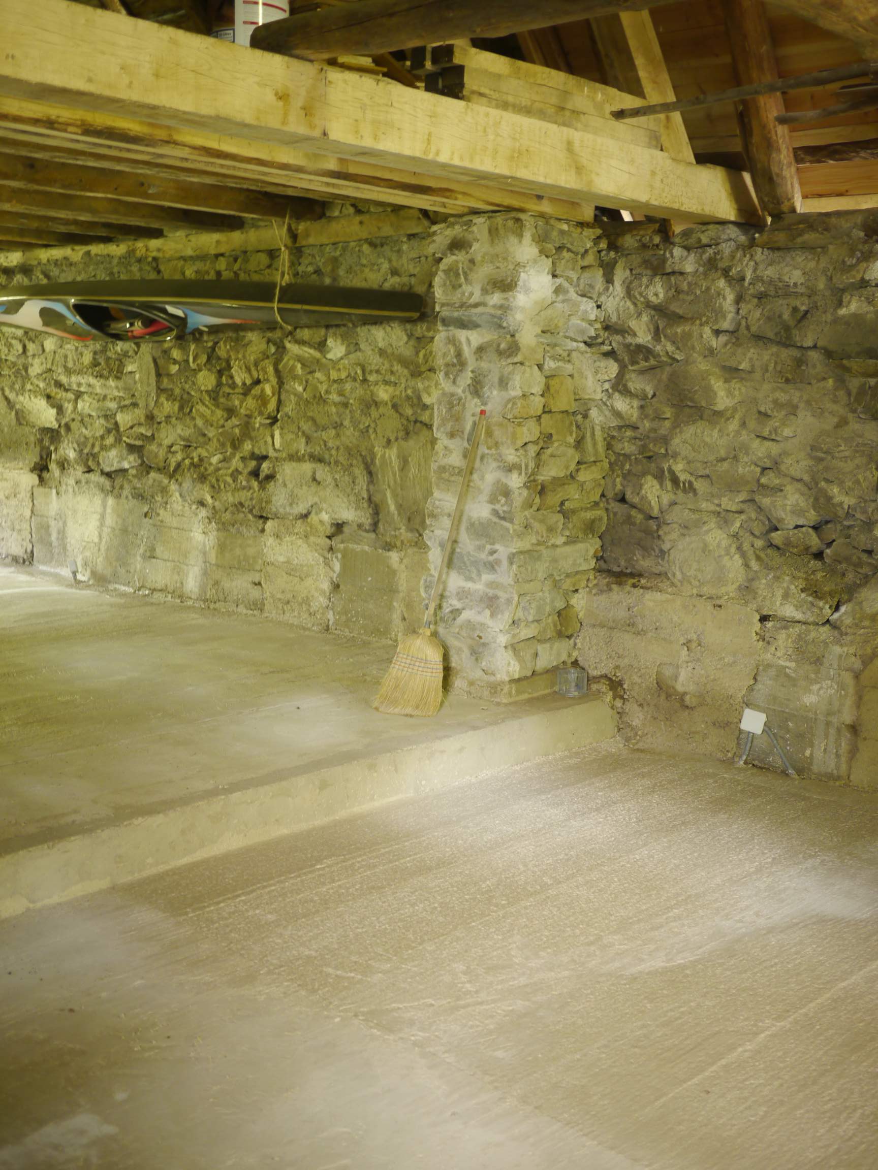 Sur cette partie humide de la grange le mélange sable gravier a été remplacé par de la pouzzolane.