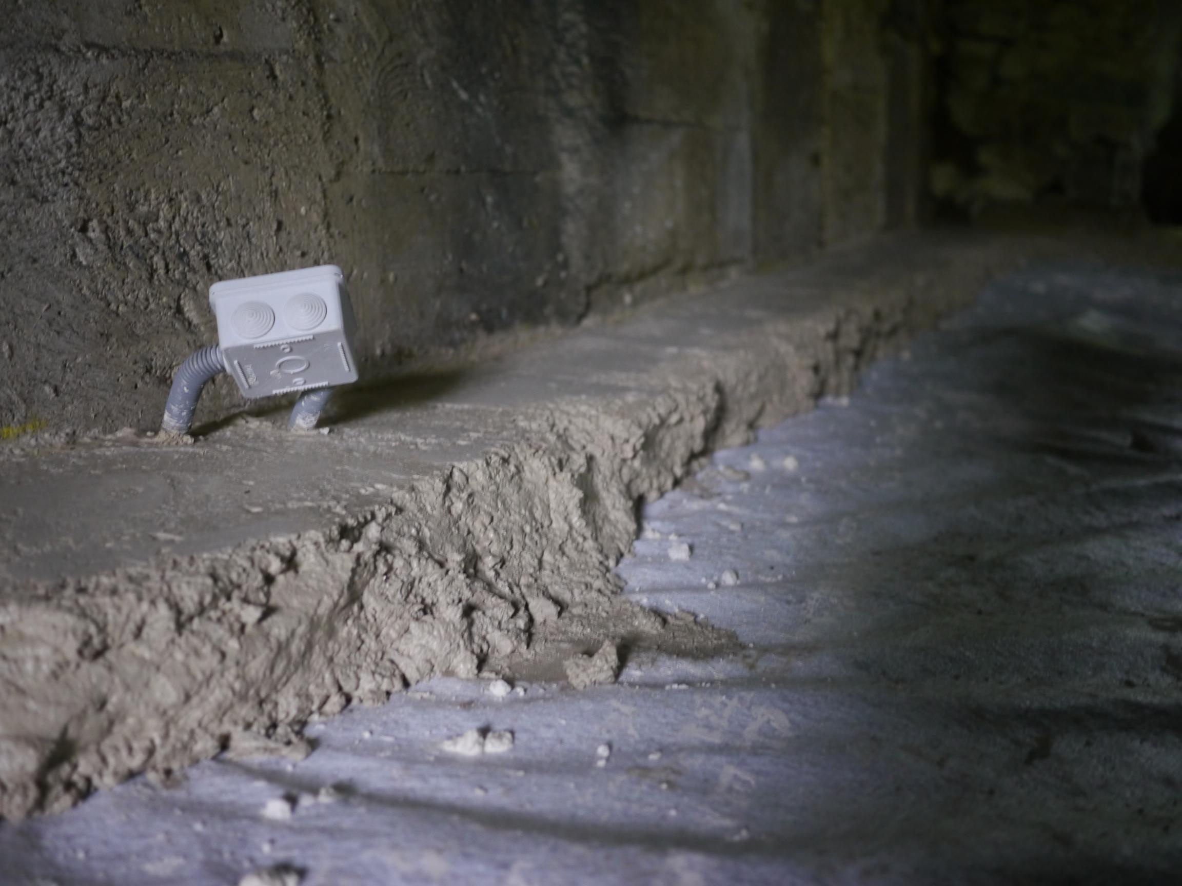 Au début nous avons taloché la chape ce qui est d’un très bel effet, puis sachant que celle ci sera couverte d’un planché, nous l’avons laissée brute.