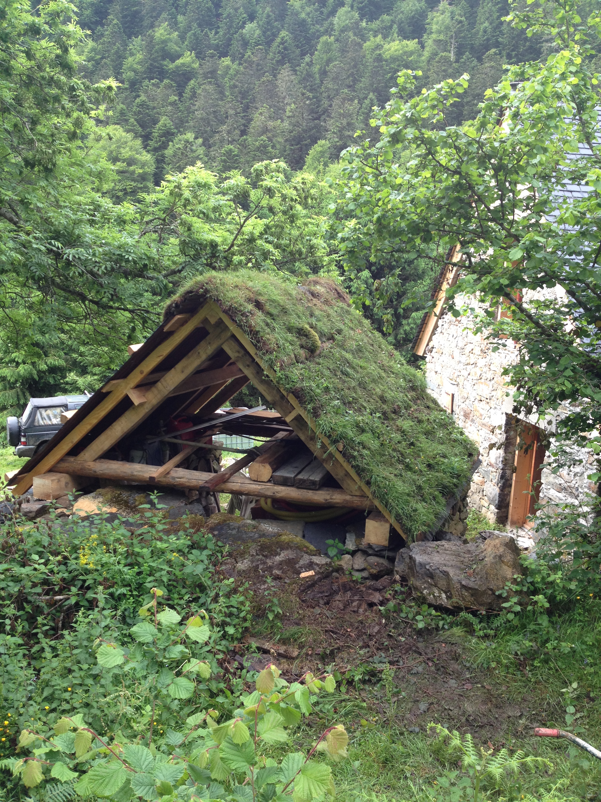 l’ancien abri et sa toiture végétalisée