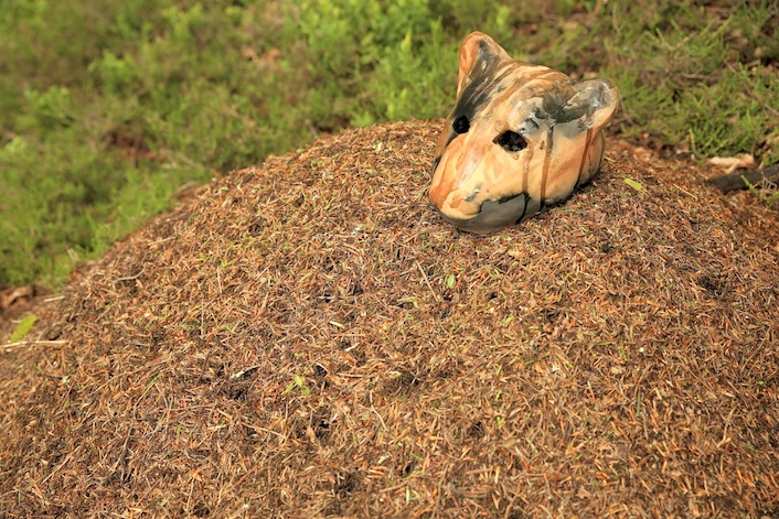 du 30 mai au 11 juin 2018 Bertrand commence à bien connaître le Hourc, qu’il a expérimenté à presque toutes les saisons, bien que cette visite de printemps ressemble plus à l’automne : éclairs, tonnerre et grosses averses ont transformé son travail in situ en véritable épopée! La vallée s’est peuplée et belles et troublantes…